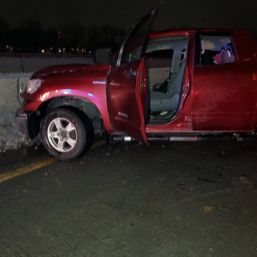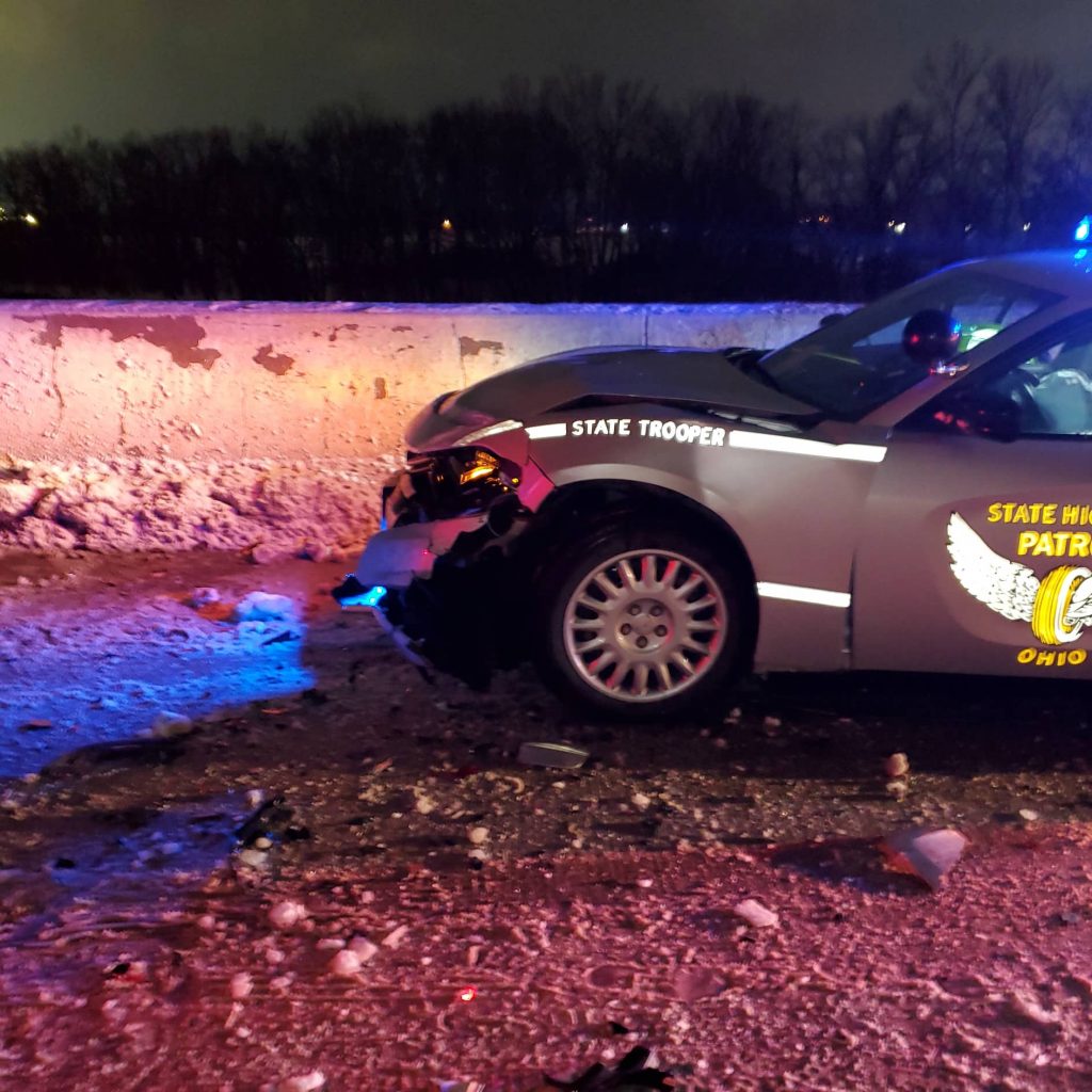 Details are still being worked out at this time but apparently, a two-vehicle accident occurred previous to the OSP vehicle being hit. The OSP Trooper had responded to a two-vehicle accident. Several other vehicles had previously stopped at the accident also. The red truck rear-ended the OSP vehicle with its lights causing a secondary crash that involved the other stopped vehicles.