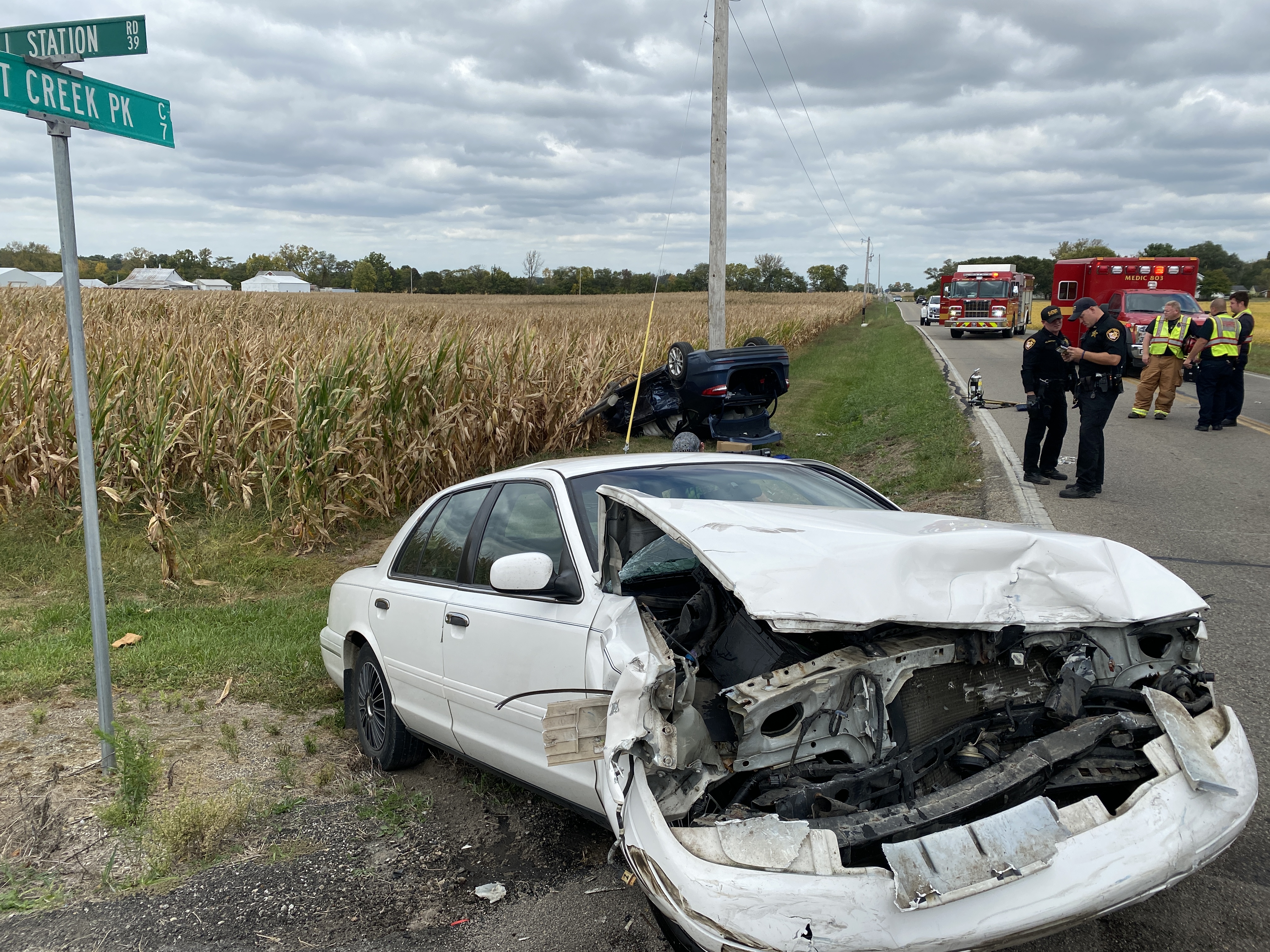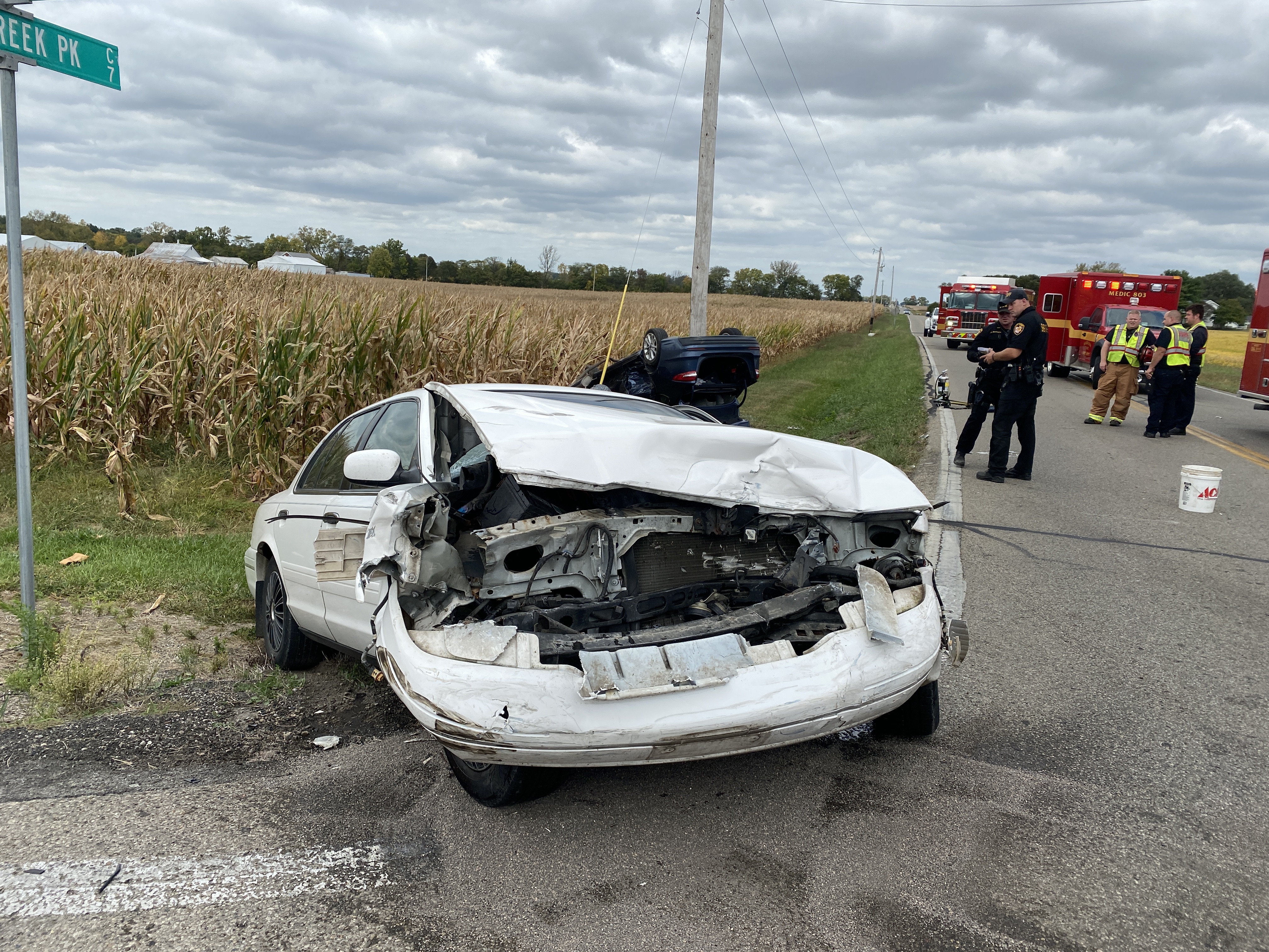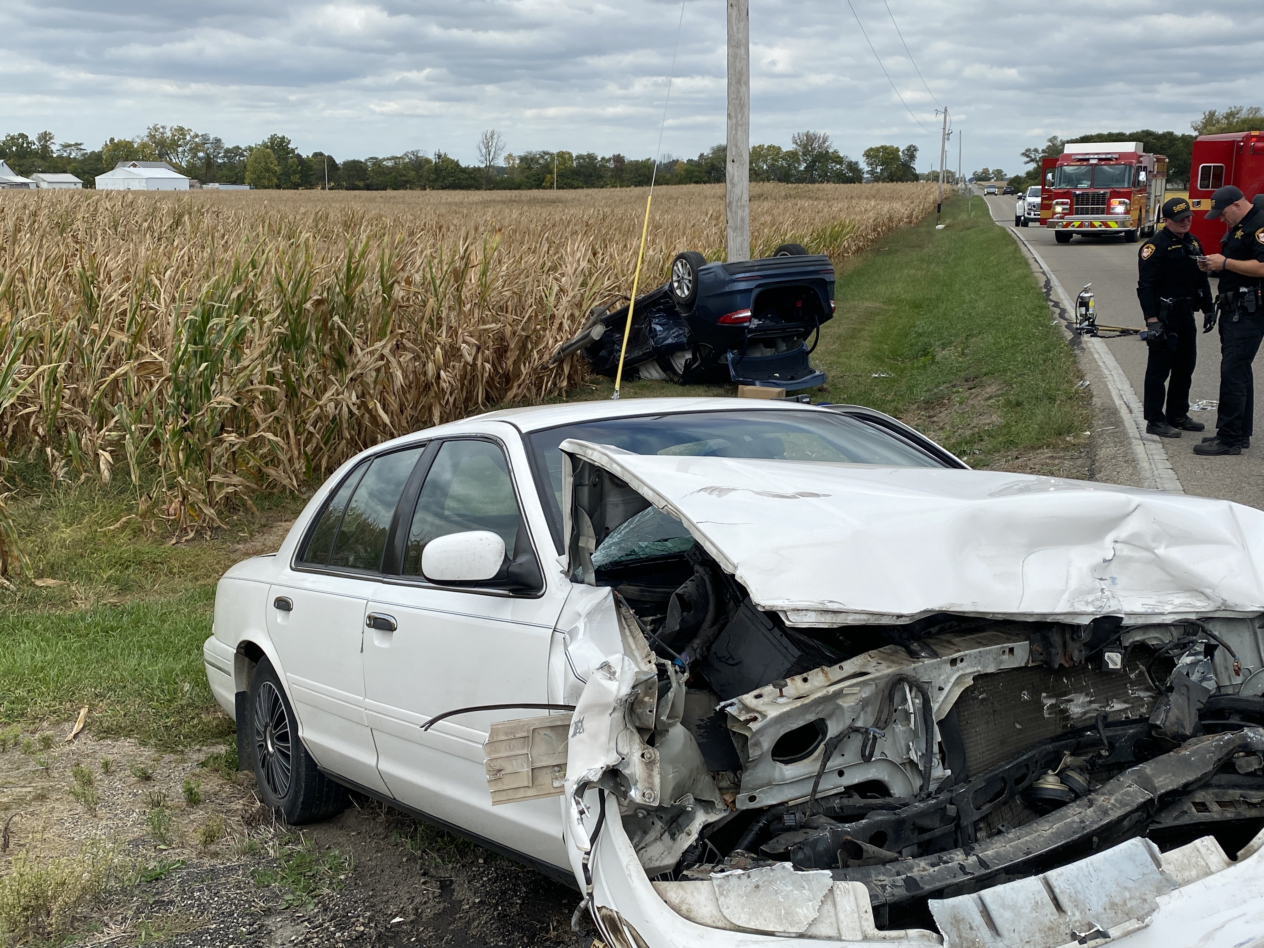 According to Pickaway Sheriff department on scene the White Crown Victoria driven by a man from Pickaway County was driving westbound on Bell Station road when it failed to yield to the stop sign at the intersection of Walnut creek crashing into the Blue Ford Focus. The Focus overturned into a farm field and came to rest on its top.