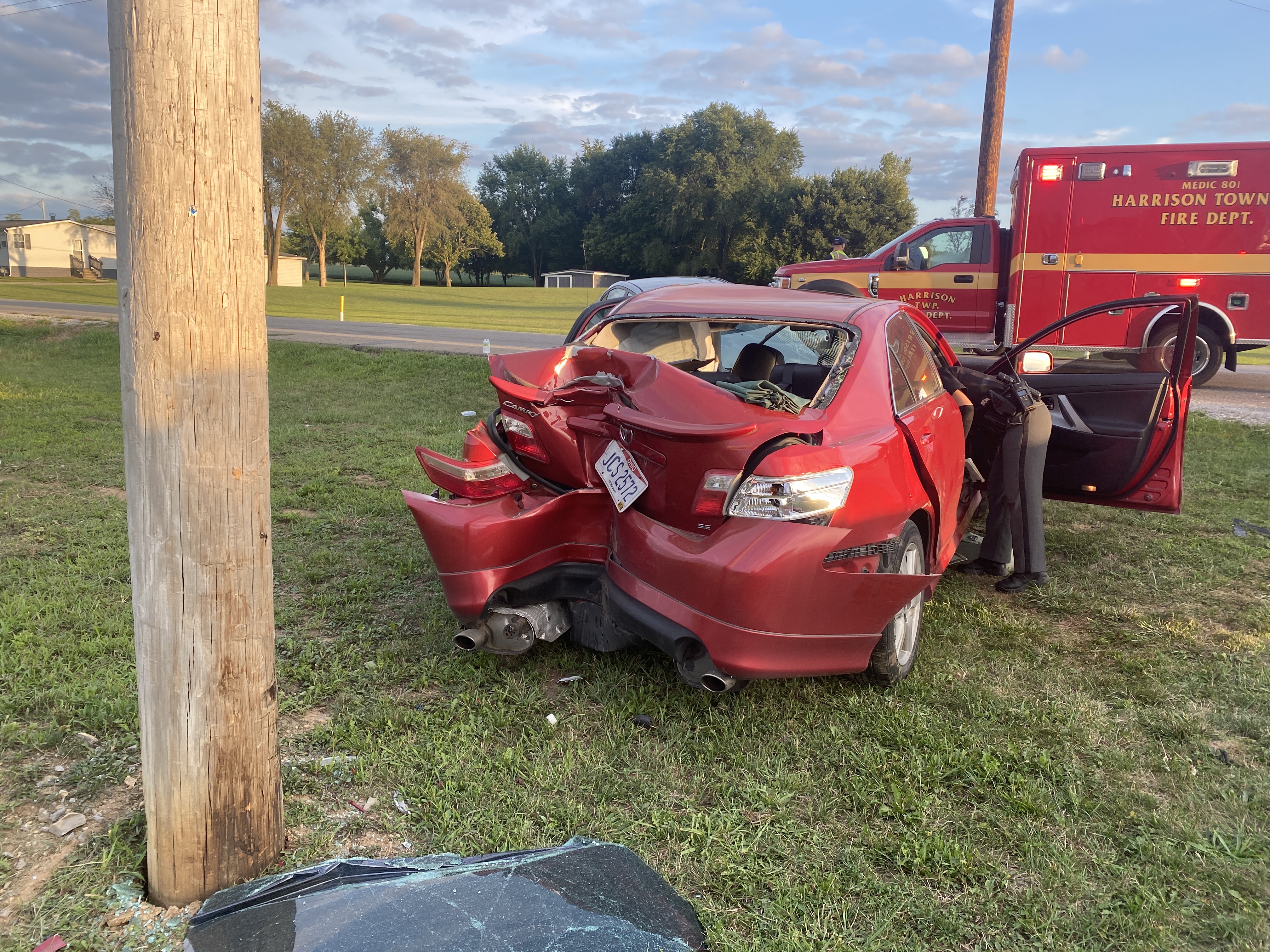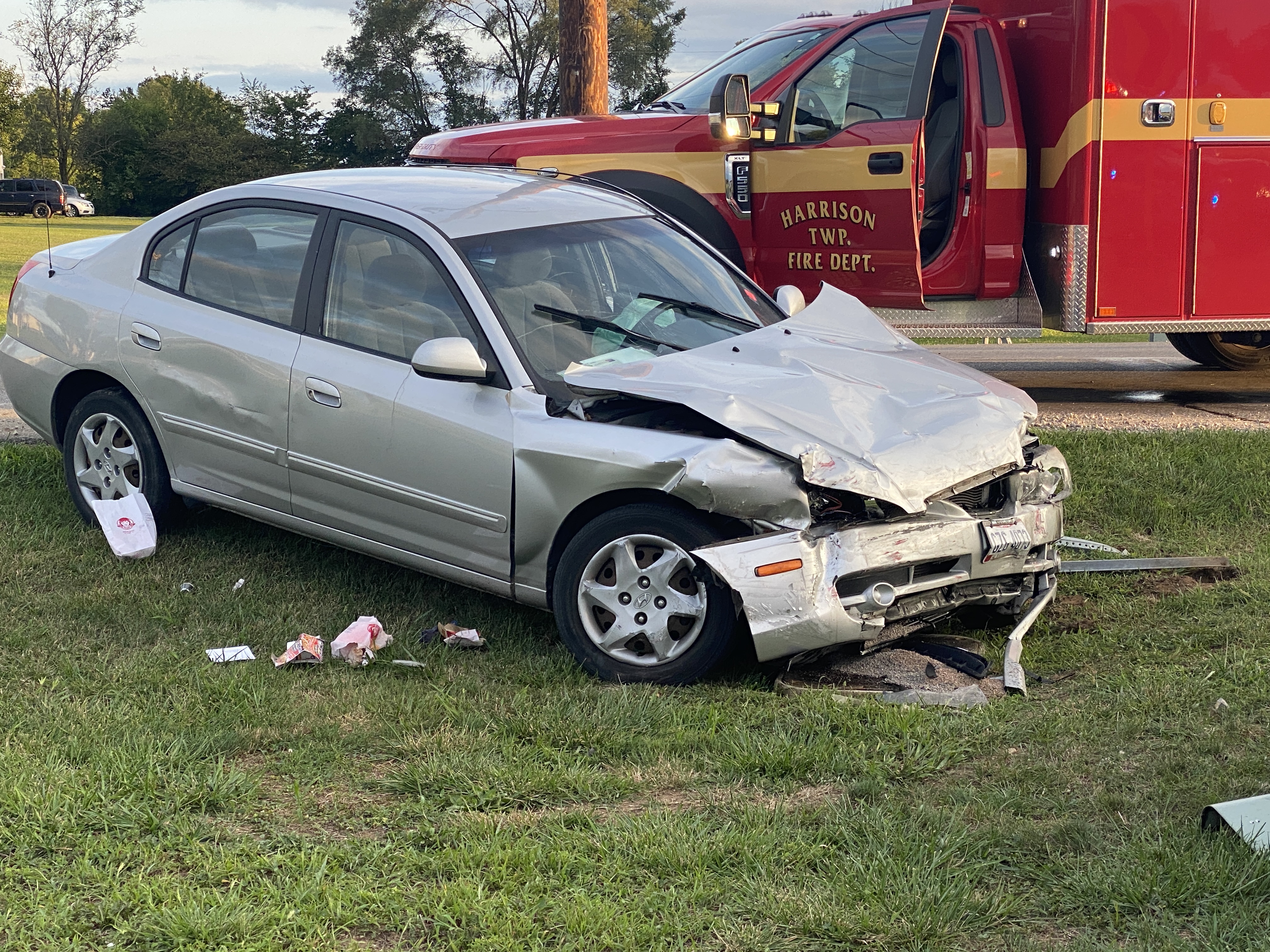 The collision sent both cars to the east side of Walnut Creek pike, the Toyota then struck a utility pole at a high rate of speed causing more damage to the already folded car.