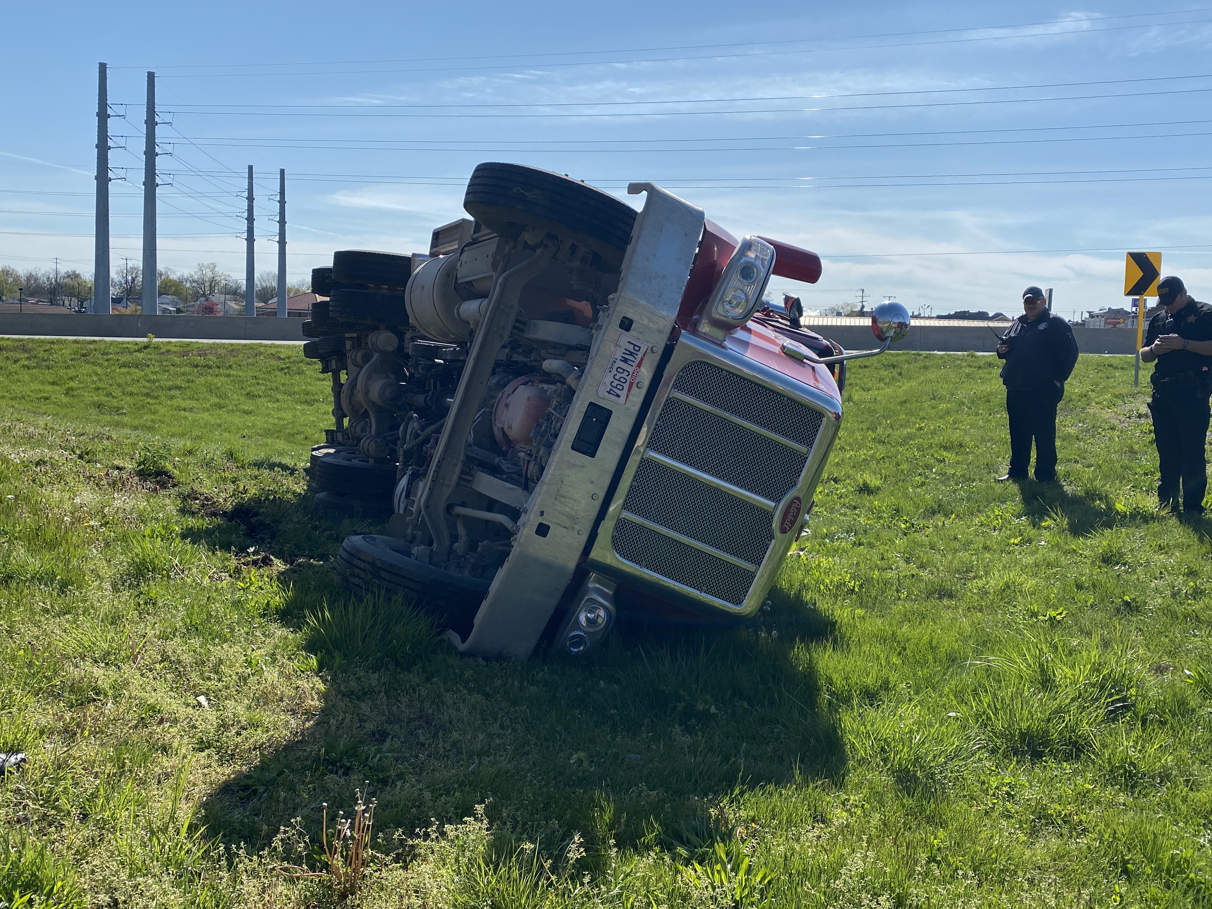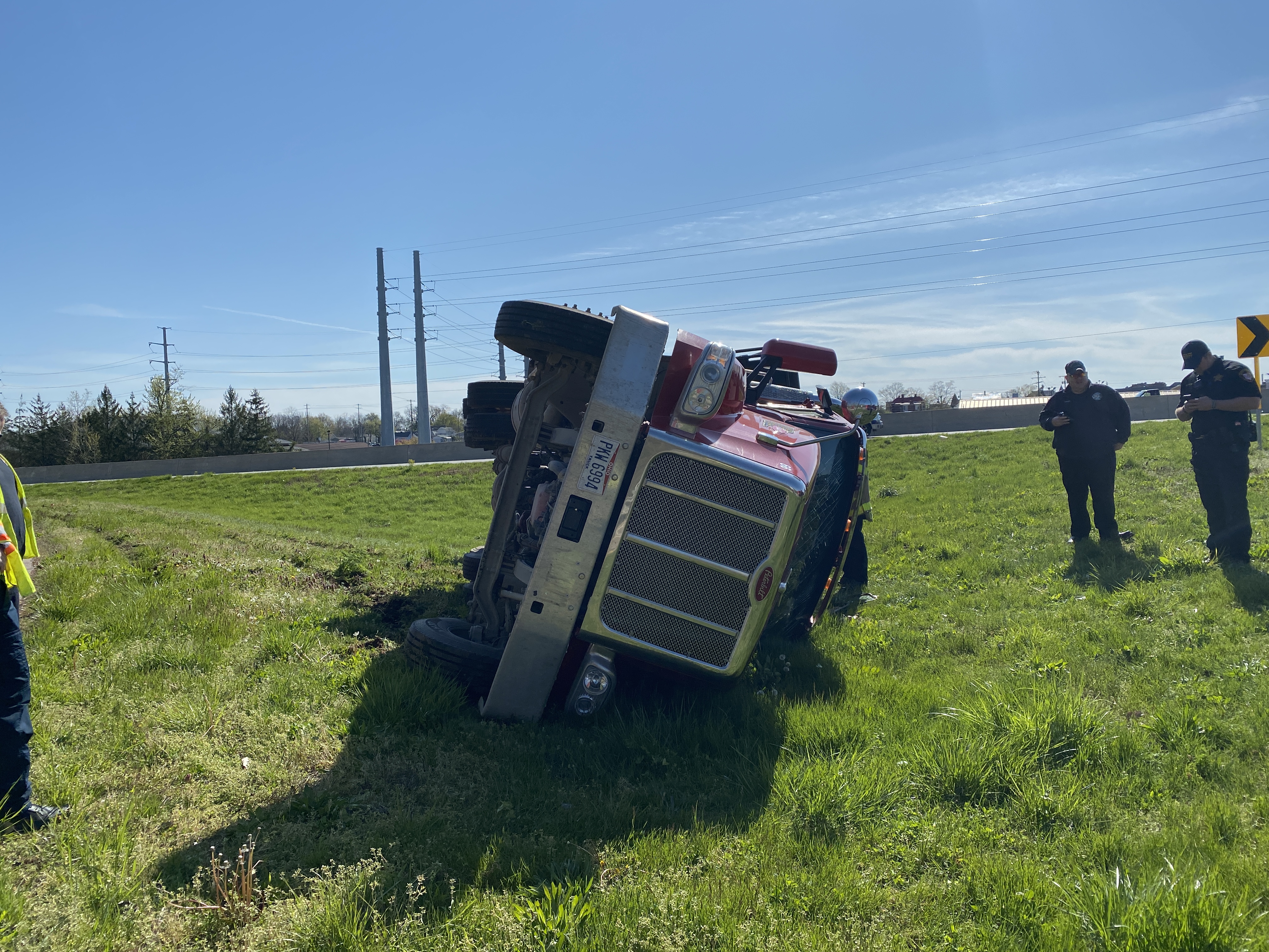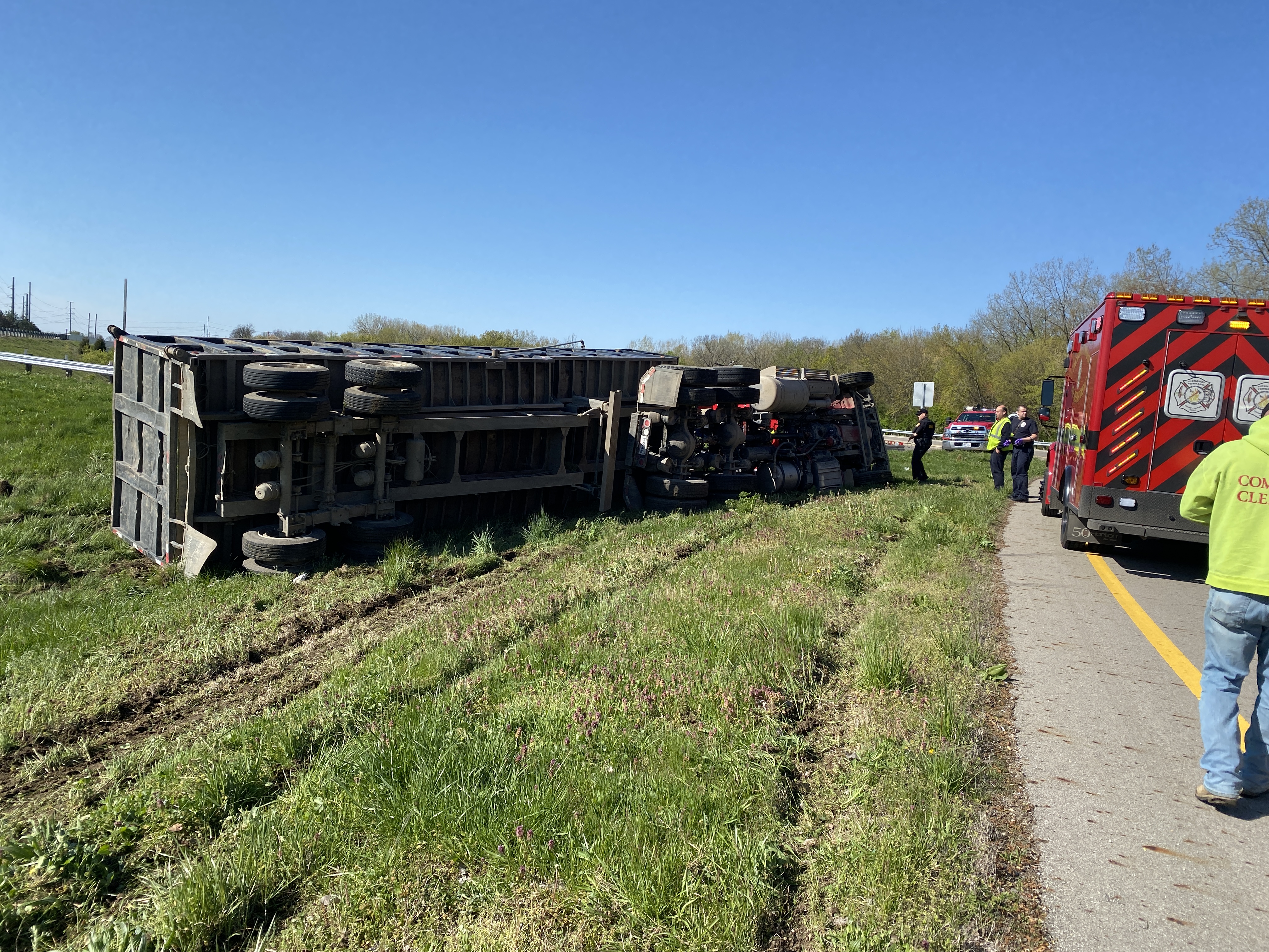 PICKAWAY – Around 8:51 am on April, 20, 2020 Pickaway Sheriffs office received a report of a dump truck that had lost control and flipped on its side at the US-23 south and Main Street exit.
