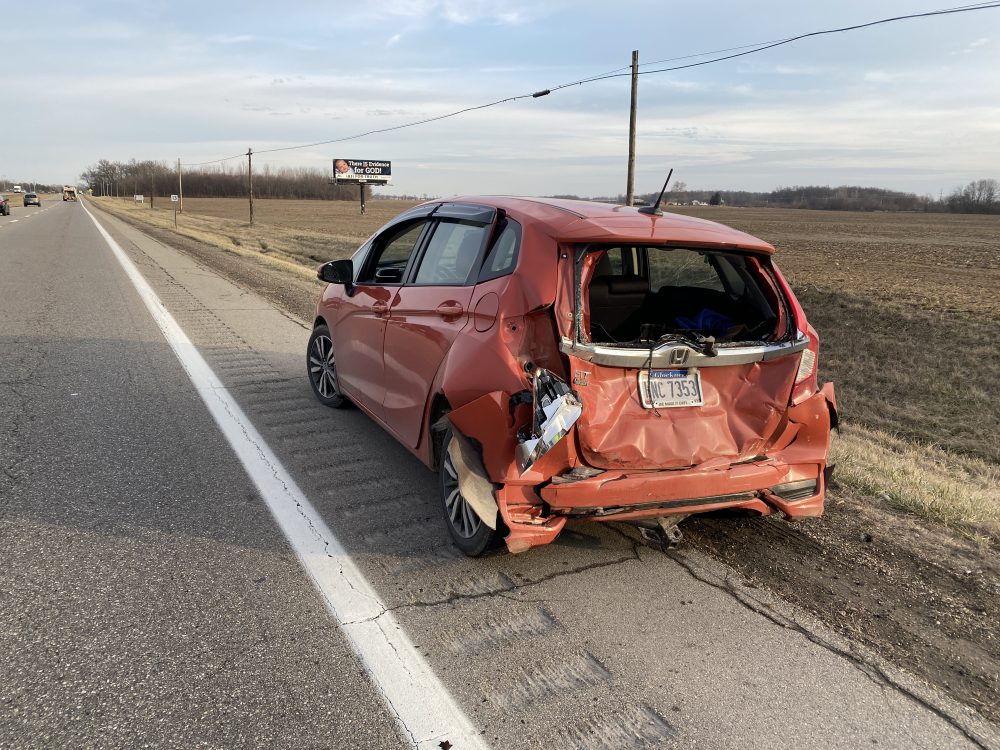 According to Sheriff the orange Honda Fit was heading Northbound on North Court and attempting to merge into traffic on US-23, but had to yield to heavy traffic when the black Chevy Traverse who was also heading Northbound on North Court failed to keep safe distance and rear ended the Honda Fit. After the Suv struck the Honda the driver possibly in a medical condition drove Northbound on US-23 for about 300 yards until a concerned motorist was able to get her to stop.